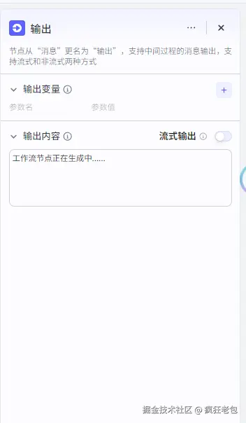 这些“提示牌”就是输出节点,它们会在工作流进行的时候,时不时地告诉用户:“嘿,别急,事情正在办呢,稍微等一下哈。”这样用户就知道,哦,事情还在处理中,不是卡住了或者没人管了。