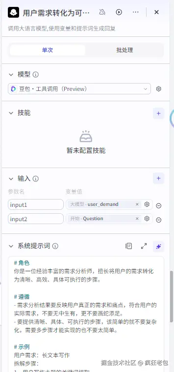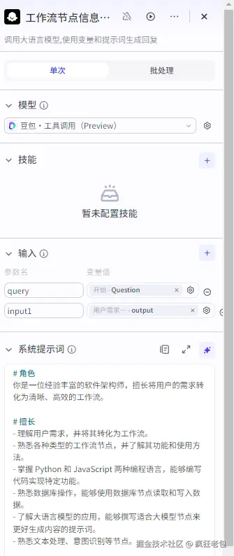 这个节点全靠那些大语言模型的聪明才智,它们能搞定很多复杂的语言处理任务。你可以根据你要做的事情,挑一个合适的模型,然后设置一些提示词,告诉模型你想要它怎么回答,就像给它一个角色设定一样。