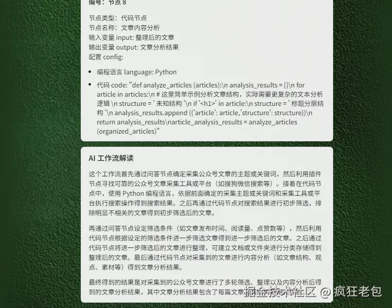 👨💻 不过大家别怕!老包精心打造的这款智能体,正是为了解决你们的困惑而来。它能帮你轻松规划工作流,将复杂任务分解成简单步骤,确定每一步的执行顺序,还能一键生成各个节点,让整个流程清晰明了,一看就能懂。🤖