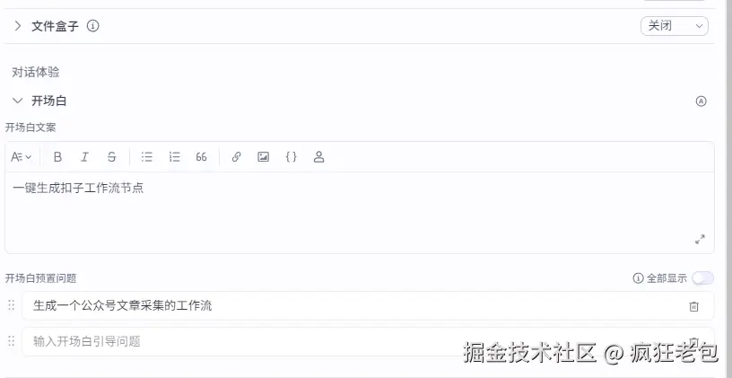 3、设置开场白