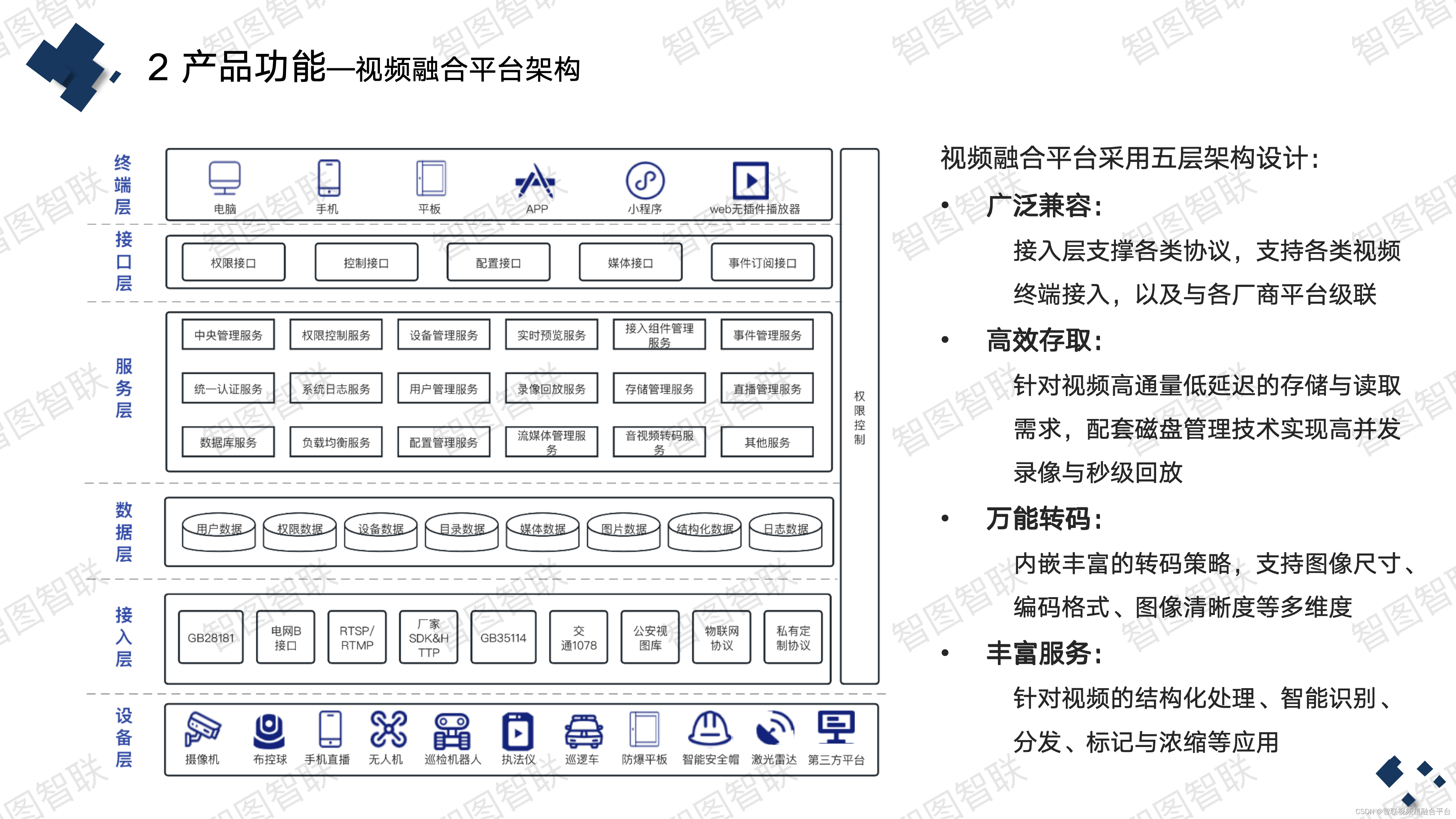 智联视频超融合平台是一个解决音视频设备、物联网设备联网的平台产品,目的是为多行业提供了一个通用的互联互通的接入转换底座,具有业界最全面的设备接入能力和音视频转换能力。