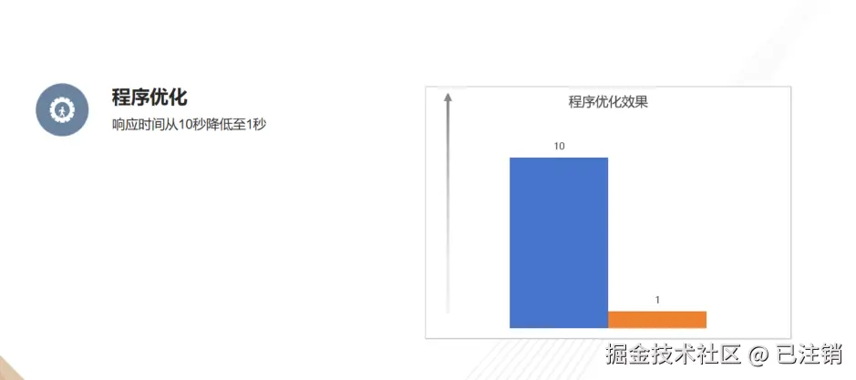 举个例子,假如说你对 APP 的启动速度做了优化,打开 APP 的时间从 10 秒降低到了 1 秒,如果你只是说“优化了 APP 的启动速度”,那么听众可能只是知道了你做了这么一件事而已。