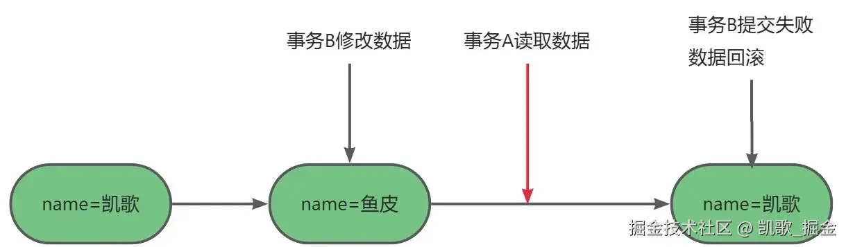 第五:事务B-->提交失败,数据回滚,鱼皮-->凯歌