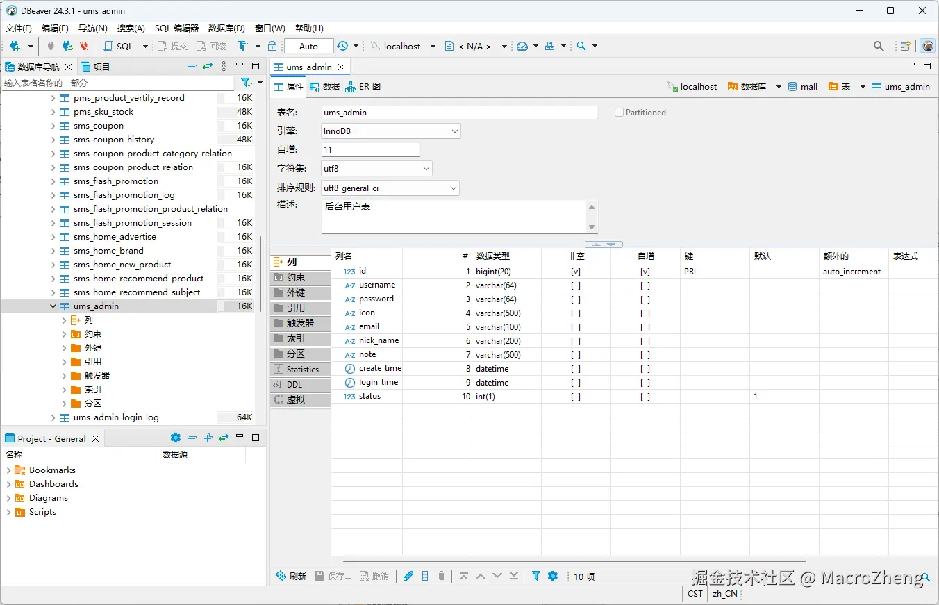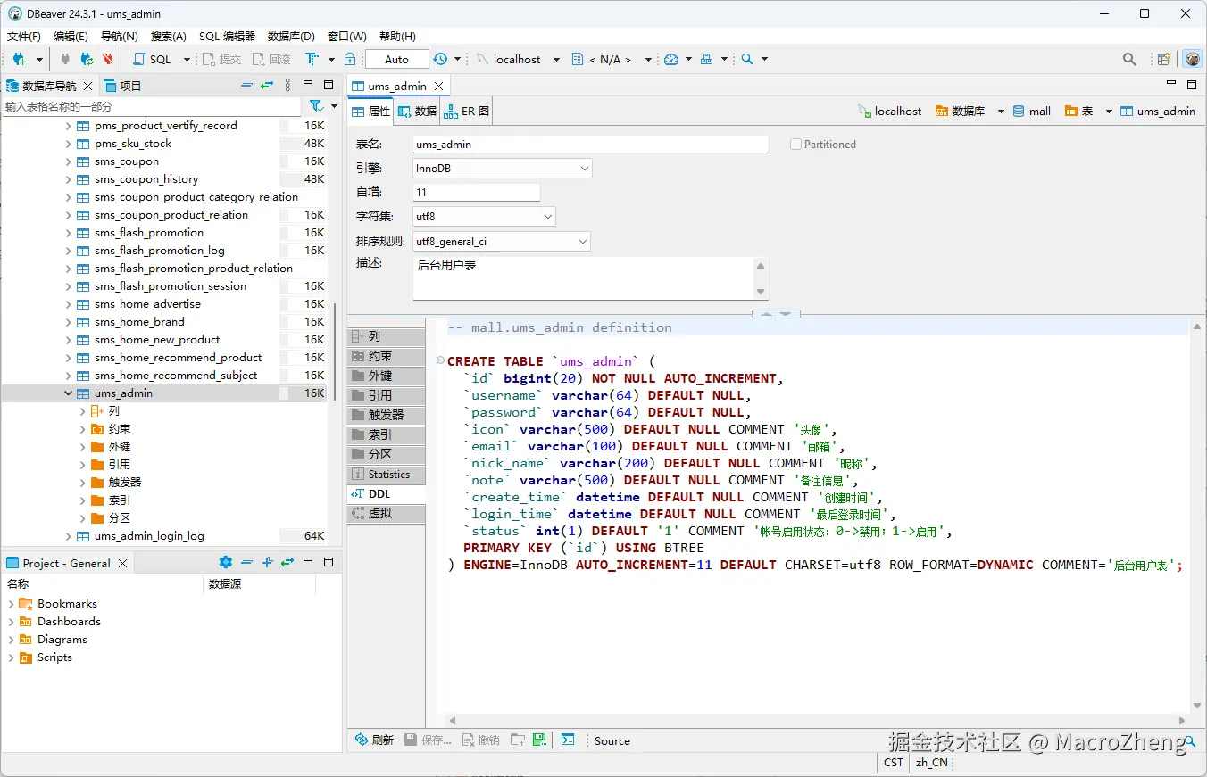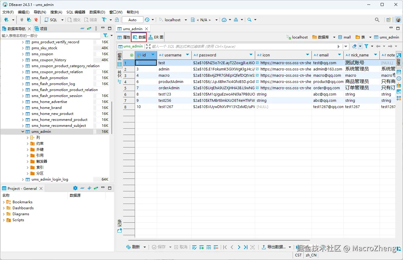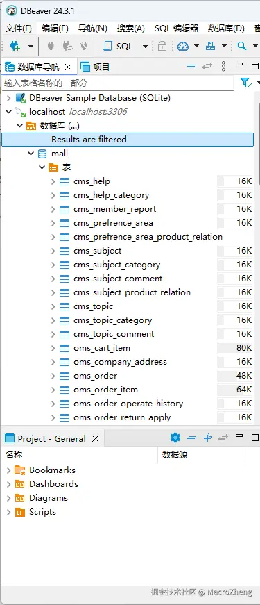 下面我们将以mall项目的数据库为例来讲解DBeaver的使用,这里简单介绍下mall项目,mall项目是一套基于 SpringBoot3 + Vue 的电商系统(Github标星60K),后端支持多模块和2024最新微服务架构 ,采用Docker和K8S部署。包括前台商城项目和后台管理系统,能支持完整的订单流程!涵盖商品、订单、购物车、权限、优惠券、会员、支付等功能!