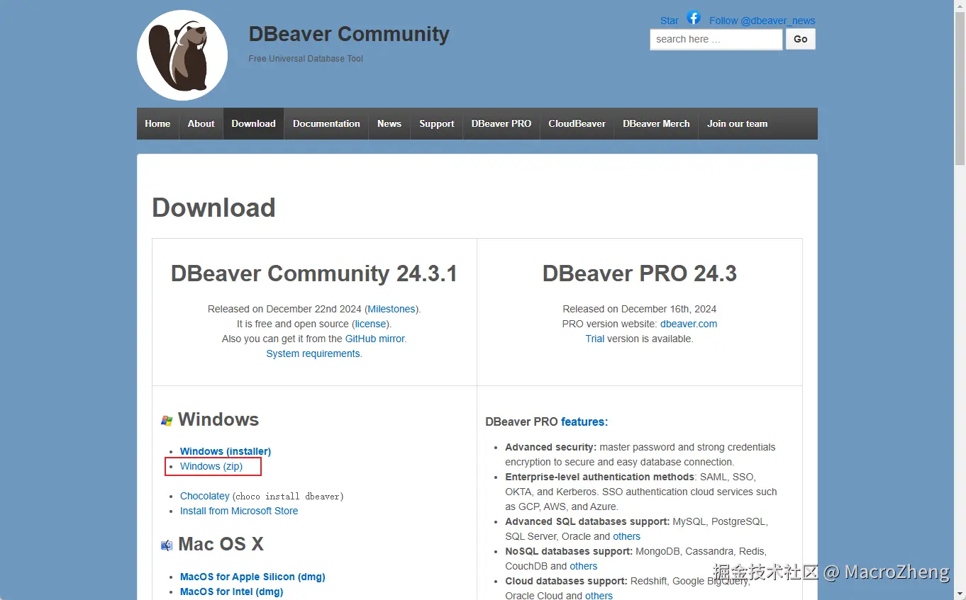接下来我们来下载安装DBeaver,直接下载压缩包版本,解压即可使用。