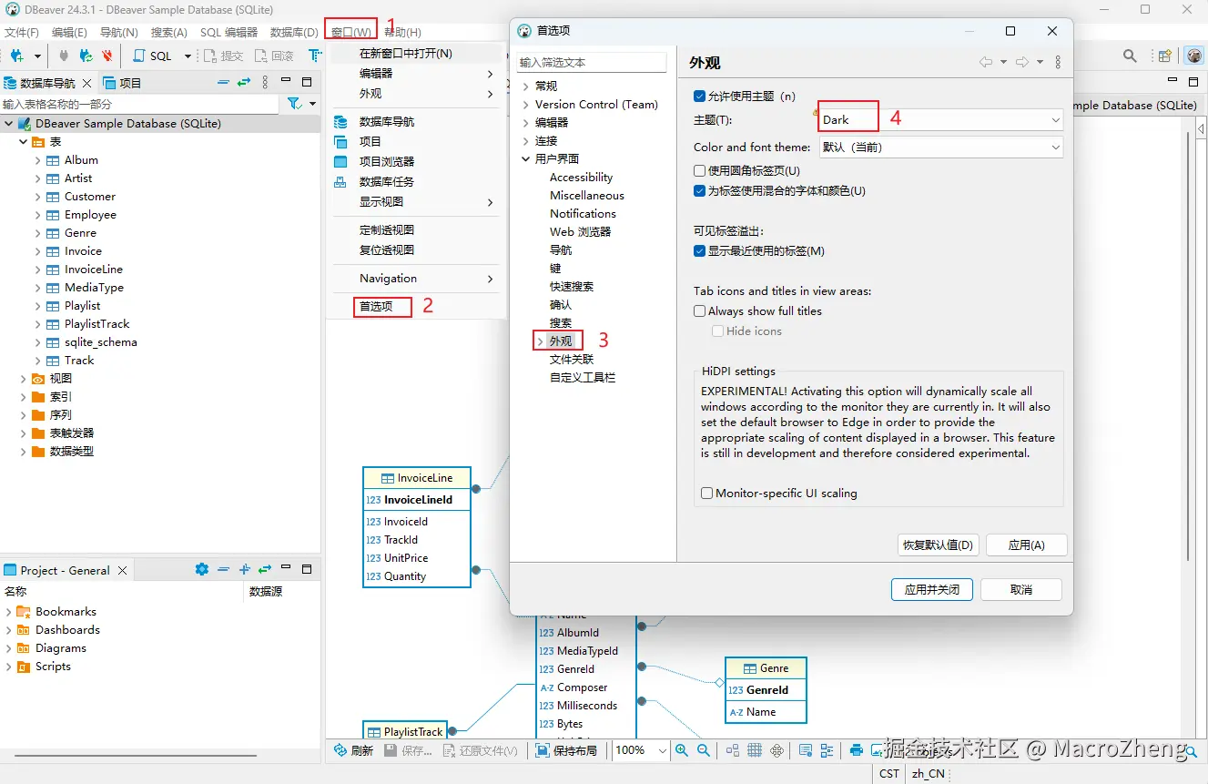 - 如果你IDEA用习惯了深色主题,也可以将DBeaver设置为深色主题,在