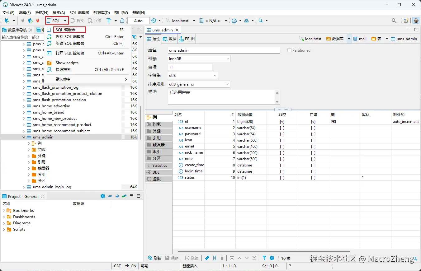 数据库表操作介绍完了,接下来介绍下如何在DBeaver中进行SQL操作。