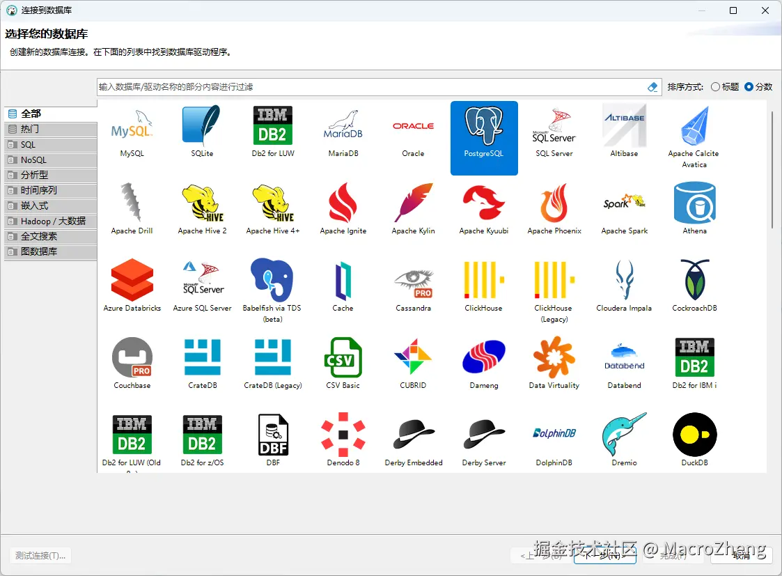 虽说DBeaver支持多达100种数据库,但是社区版本支持的数据库并不多。