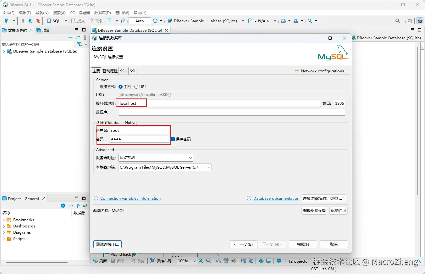- 创建完成后输入连接信息即可连接,如果是第一次连接的话会提示下载JDBC驱动;