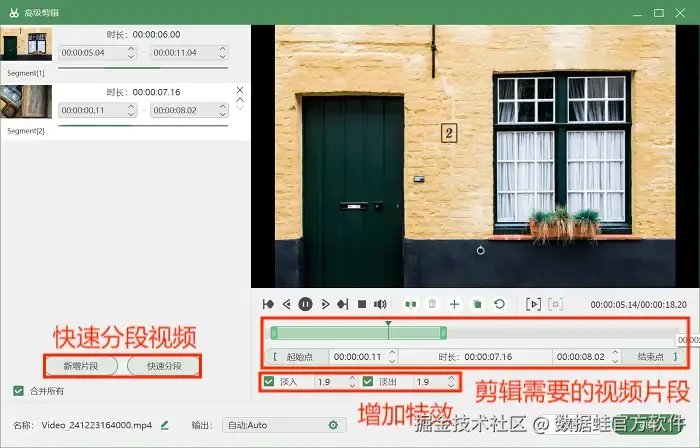 步骤3:录制完成后,我们还可以进入“高级剪辑”进行后期处理,对视频进行如快速分段、增加特效等后期操作。最后保存视频就OK啦!