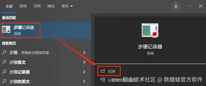 步骤1:在搜索框中输入“步骤记录器”并打开。