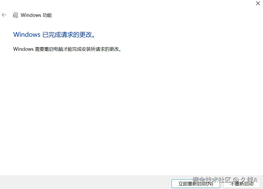 windows功能更改,重启
