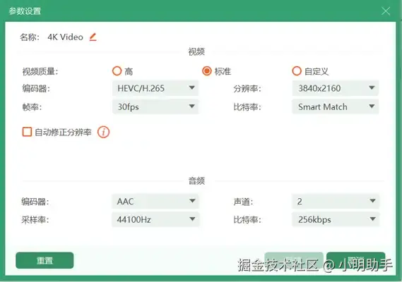 第三步: 点击【视频】,选择MP4格式。需要调整视频参数的话,可以点击界面右侧的小齿轮按钮设置比特率等参数。