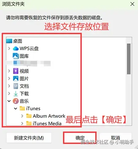 步骤3: 点击【导出】后,为恢复文件选择存放的位置。