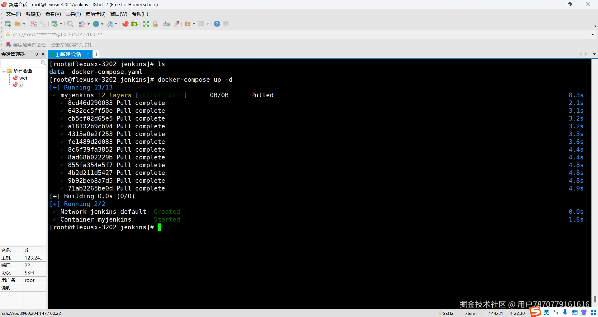 •启动 Jenkins 服务(必须在编写docker-compose.yaml 文件路径下执行启动 Jenkins 服务命令)