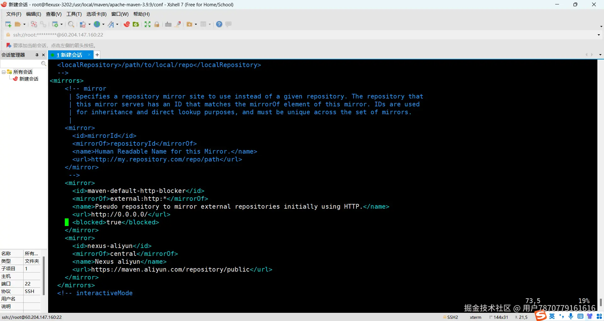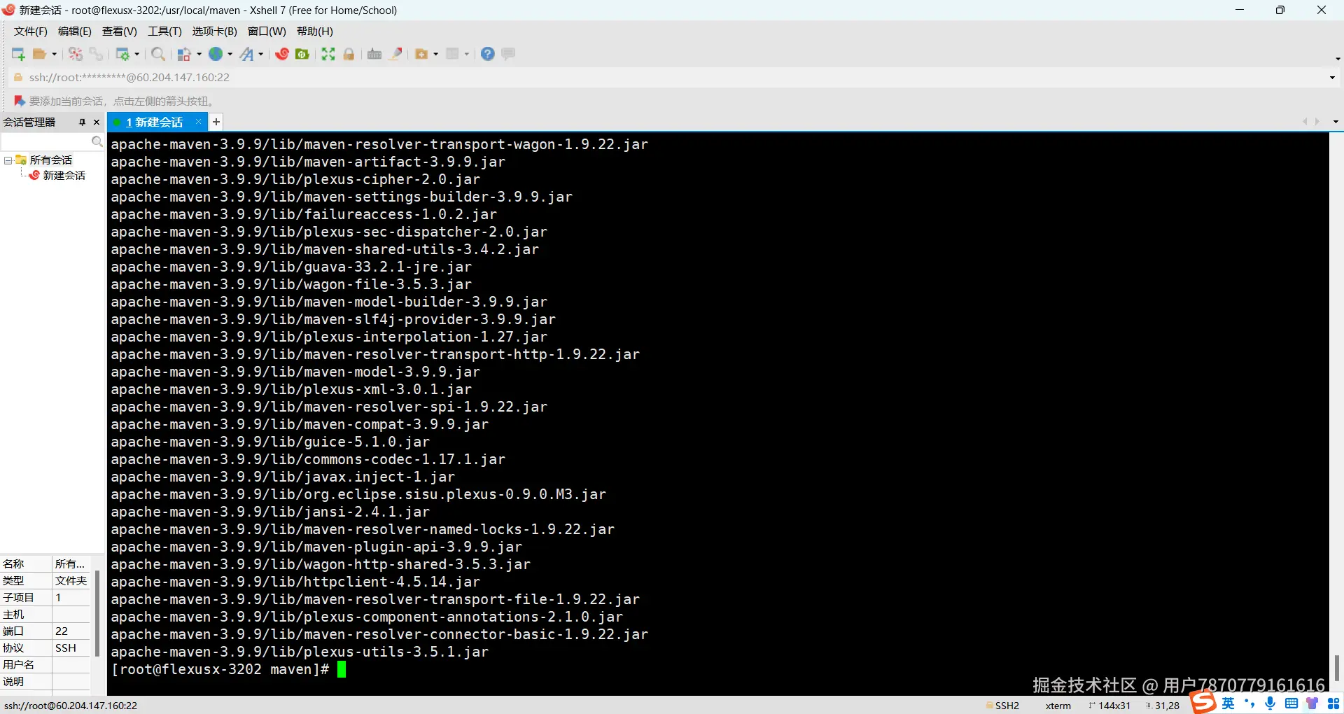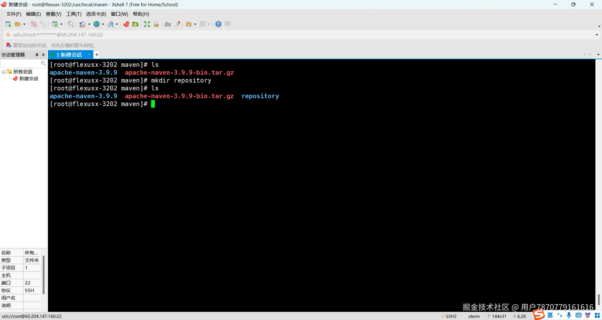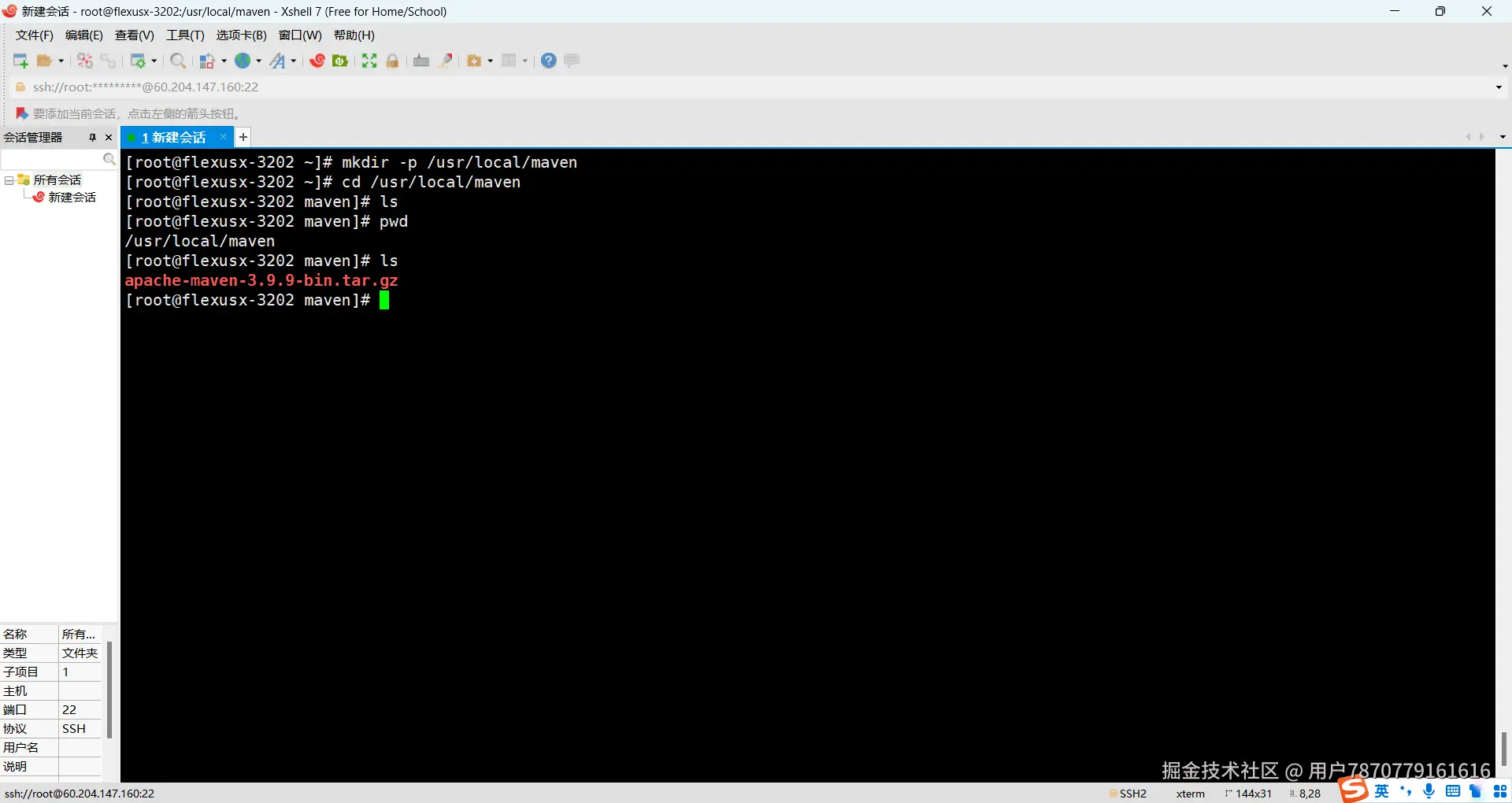 7、Maven官网下载Maven并且进行Maven配置,首先创建文件夹/usr/local/maven,将Maven传入服务器中通过xftp,放入路径/usr/local/maven
