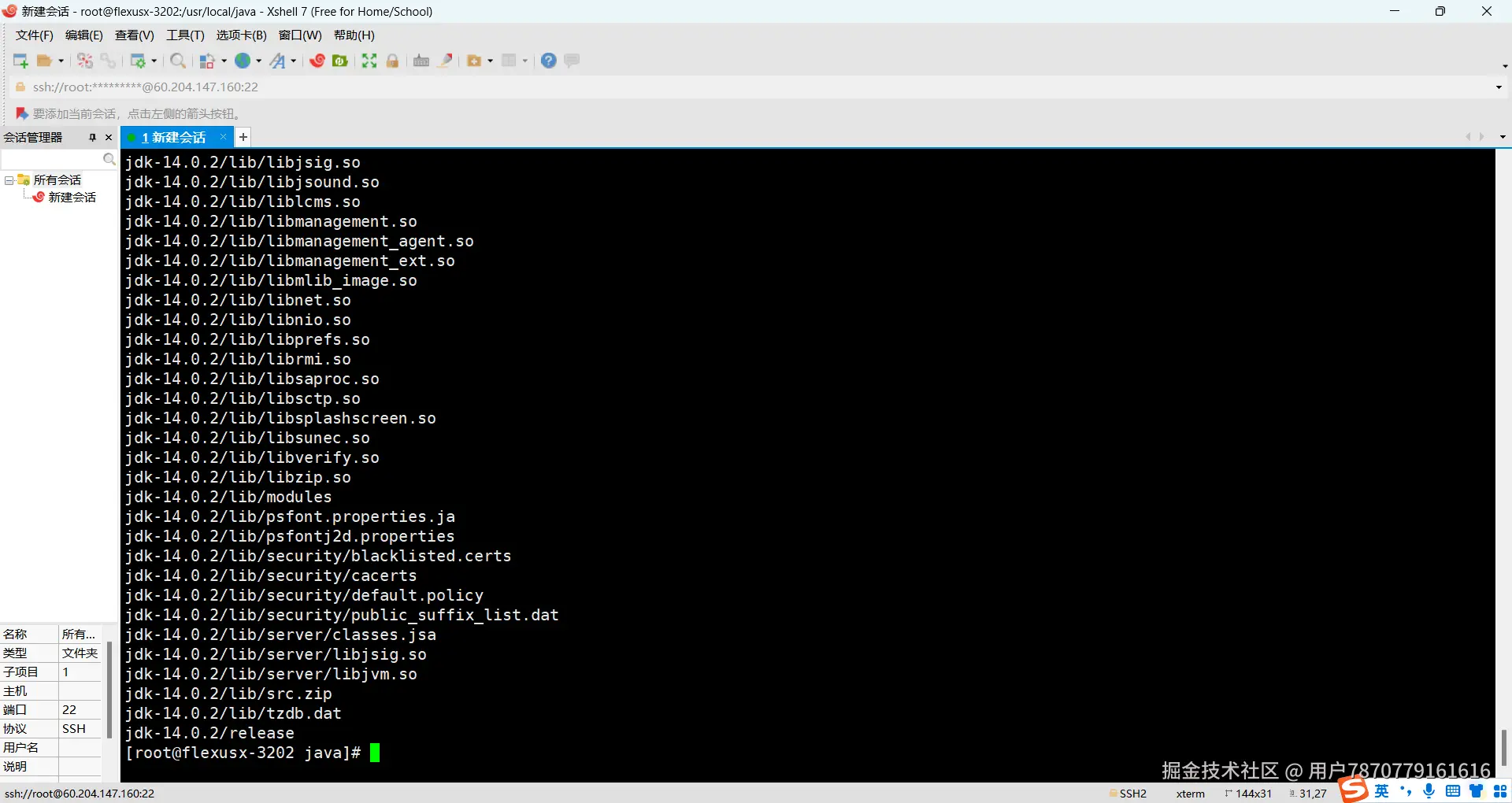 3、JDK安装(Jenkins基于Java编写)提前去官网下载JDK选择合适的Linux版本如:openjdk-14.0.2_linux-x64_bin.tar.gz,将jdk传入服务器中通过xftp,放入路径/usr/local/java