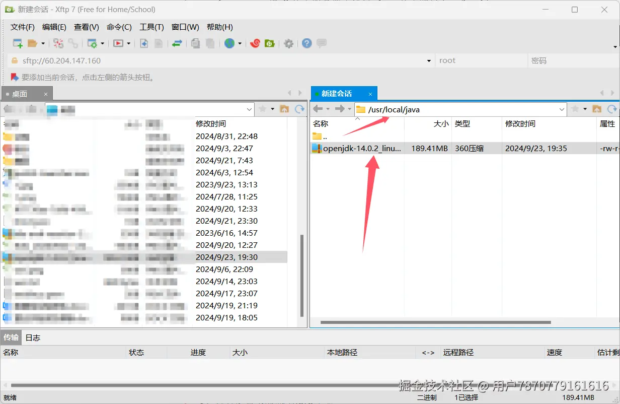•将jdk传入服务器中通过xftp,放入路径/usr/local/java