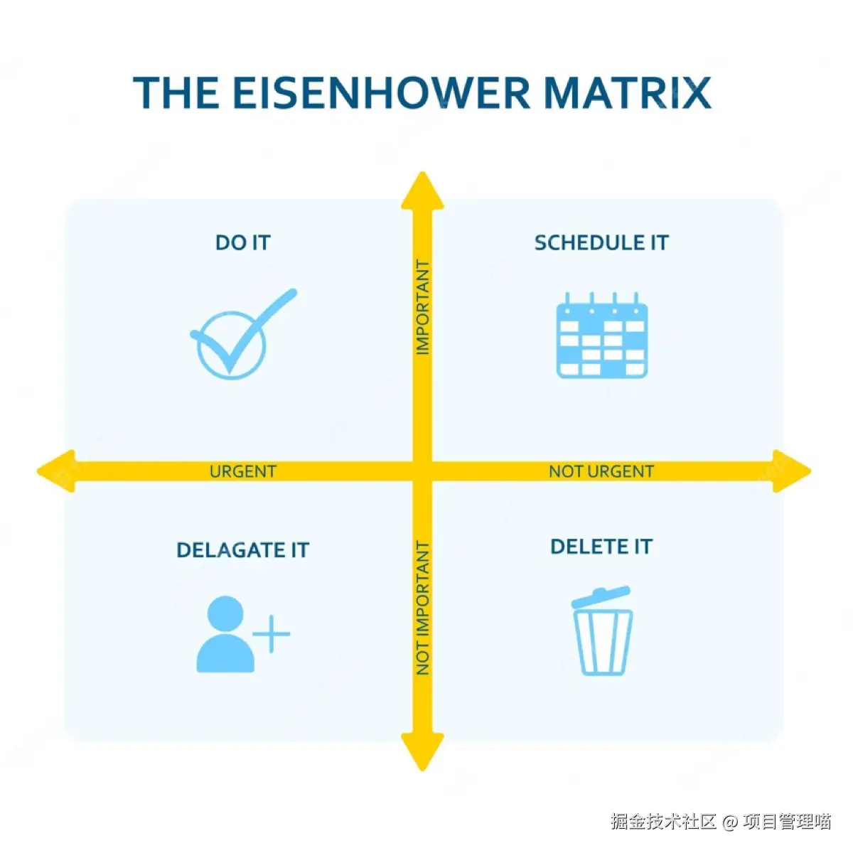 在任务排序时,你可以使用艾森豪威尔矩阵,将任务分为: