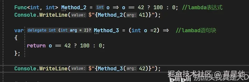 有些写法看着像lambda的,但返回并不是一个匿名函数。这种形式称为表达式成员(语法糖)。