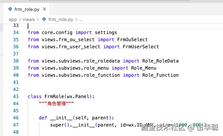 然后在主界面frm_role.py 进行汇总整合即可,如下所示,先引入相关的局部面板界面。