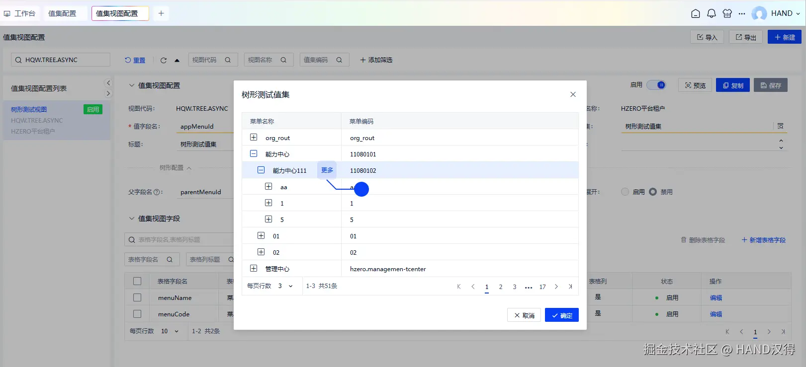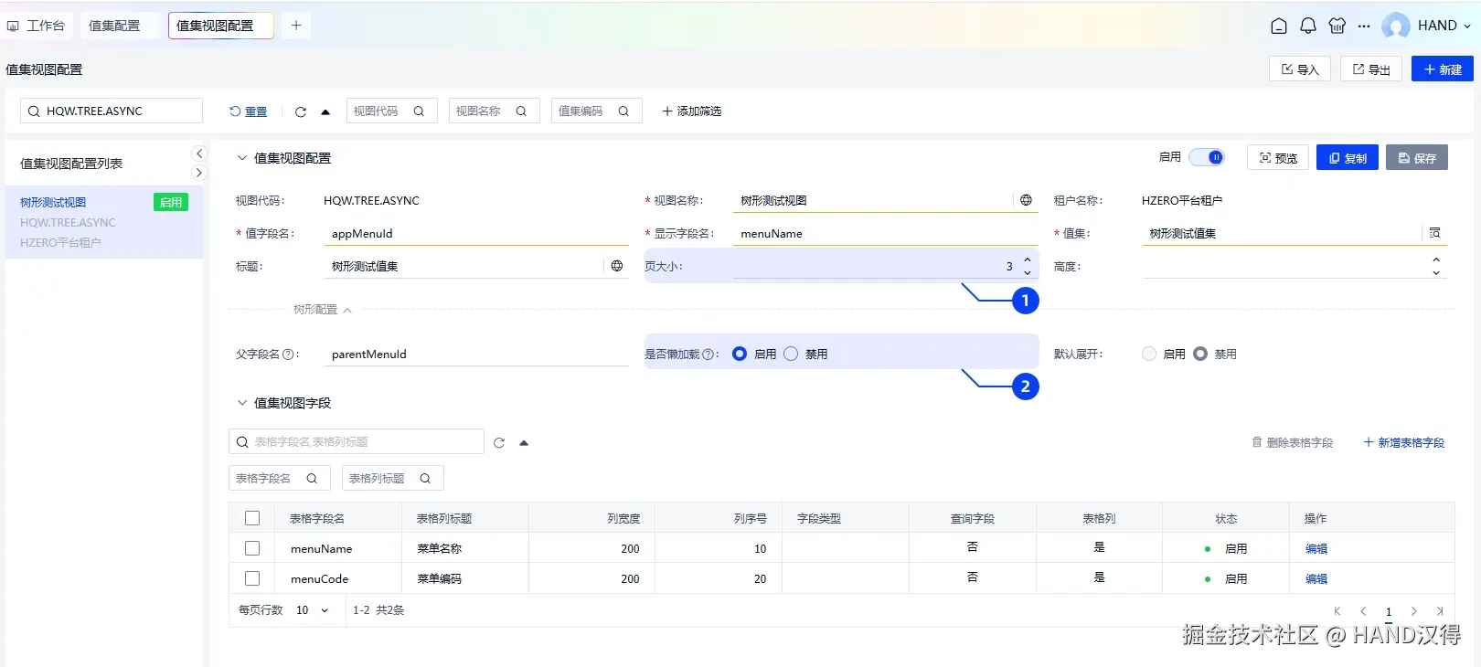 为了帮助企业用户更好地处理值集视图组件在面对数据量过大、根节点查询参数无法自定义等挑战,提高用户体验,我们HZERO平台对值集视图的树形配置做了升级调整,现在可支持分页加载、懒加载、自定义根节点查询参数配置。