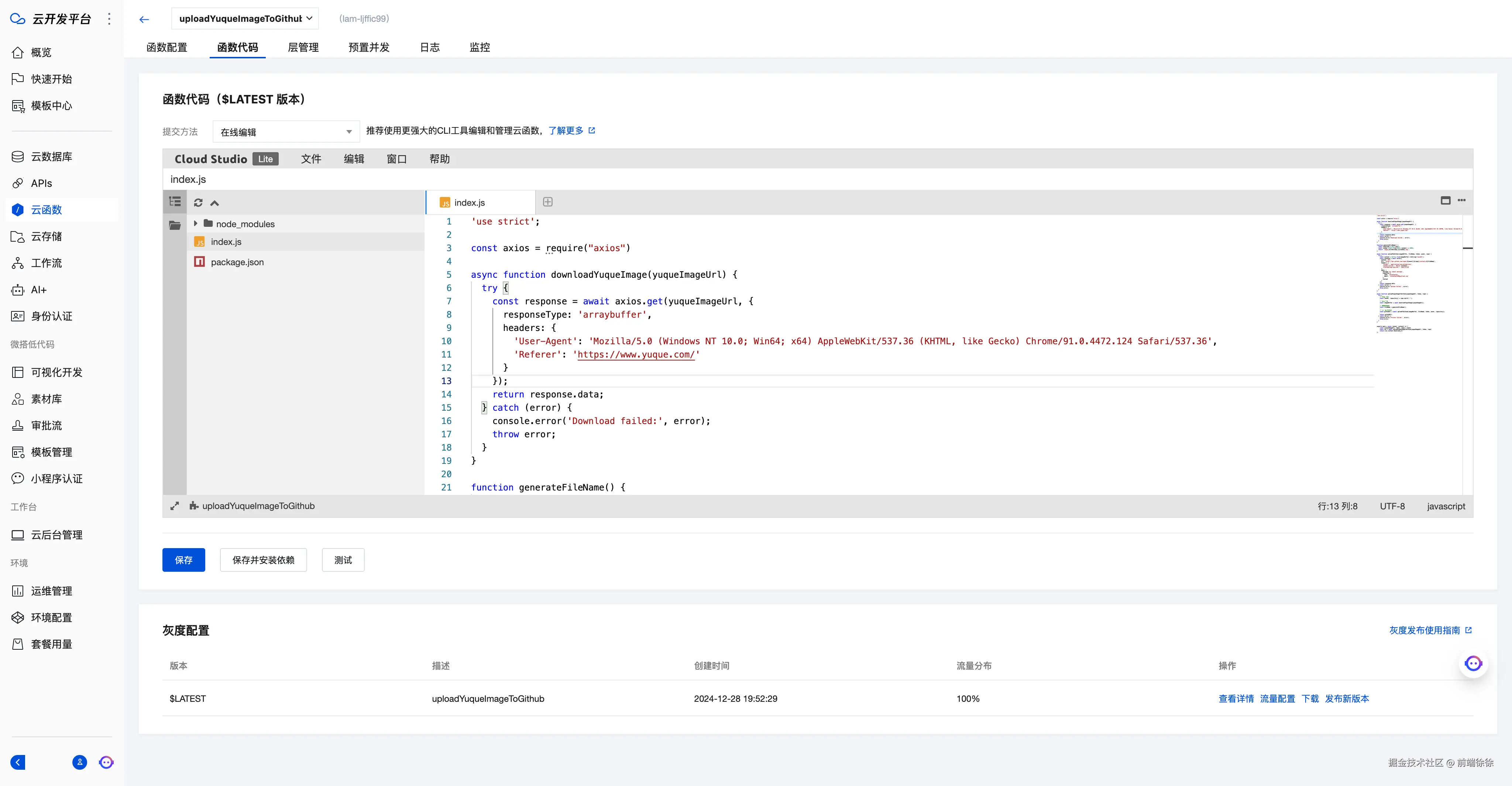 有了这段代码你就可以自己本地运行 Node 程序然后替换图片啦,也可以把这段代码部署到云函数里面,这样在web 端就可以调用啦。