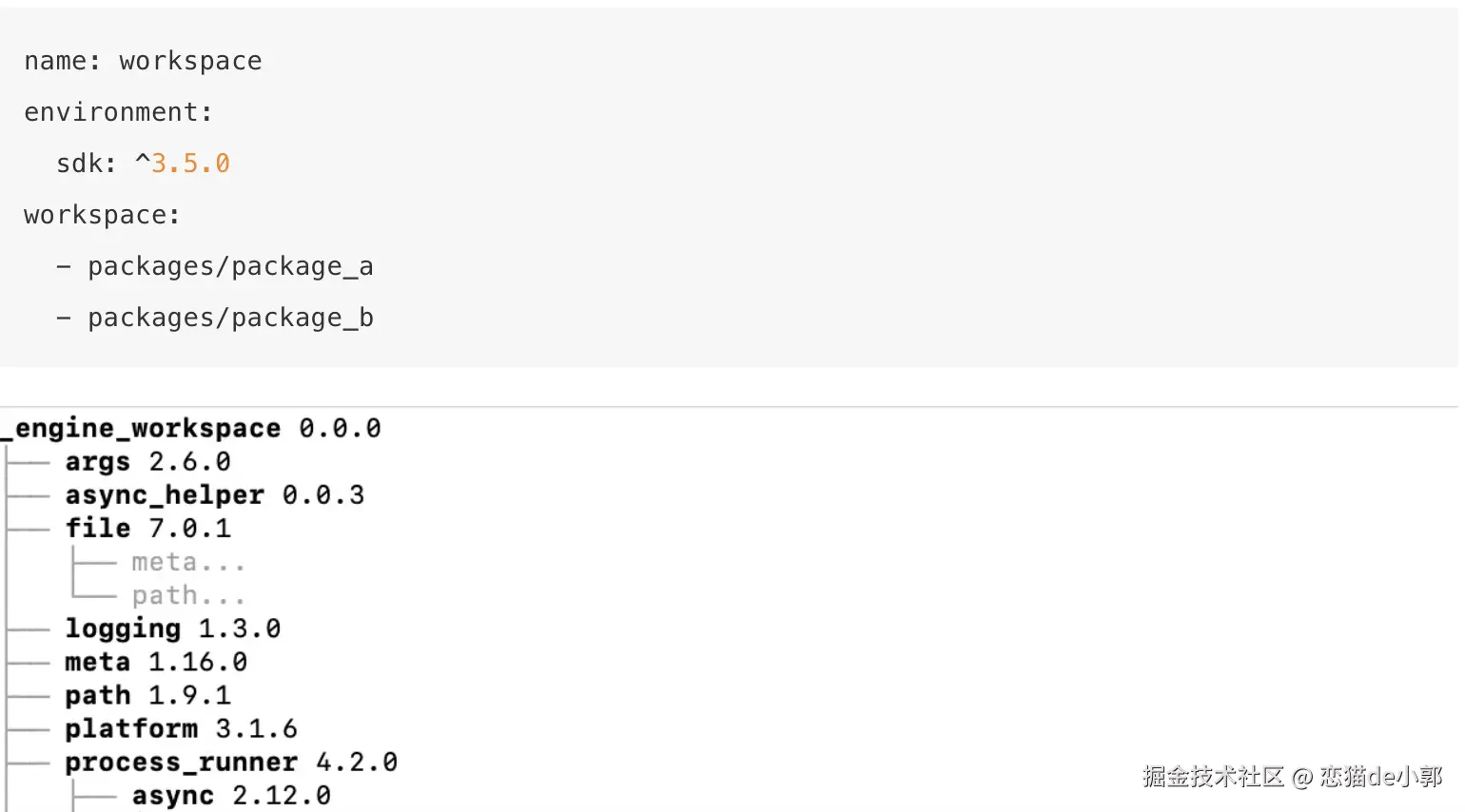 - Pub workspaces ,支持在一个 monorepo 中开发多个相关包,通过定义一个引用仓库中其他 package 的根 pubspec,在仓库中的任何位置运行 pub get 将导致所有 package 的共享解析。这可确保所有包都使用一组一致的依赖项进行开发: