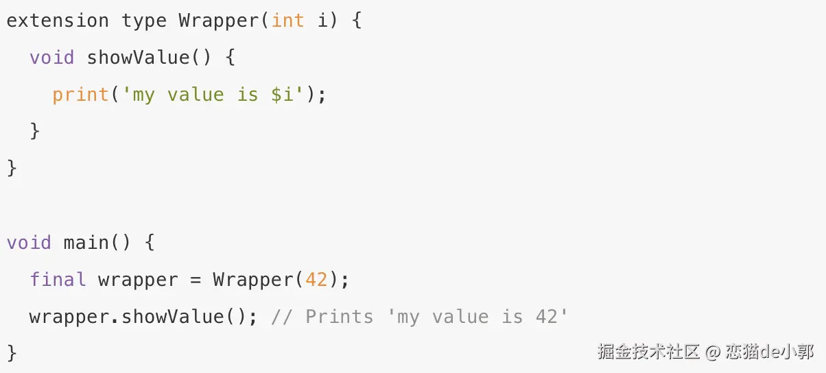 - extension 类型支持,这种拓展类型是一种编译时抽象,属于是编译时包装构造,在运行时绝对没有扩展类型的踪迹,它用不同的纯静态接口来 “Wrapper” 现有类型,它们可以轻松修改现有类型的接口(对于任何类型的相互调用都至关重要),而不会产生实际 Wrapper 的成本: