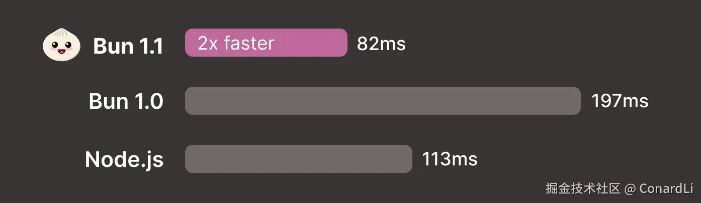 性能方面也大幅提升,如在 Windows 上安装依赖速度更快,文件系统操作等方面也有优化;改进了 Node.js 兼容性,修复上千个 bug 并新增大量 API 支持;新增了如 .bunx 文件类型等新特性;WebSocket 客户端趋于稳定;内置的测试框架得到更新,增加了更多期望方法以及模块模拟功能等。