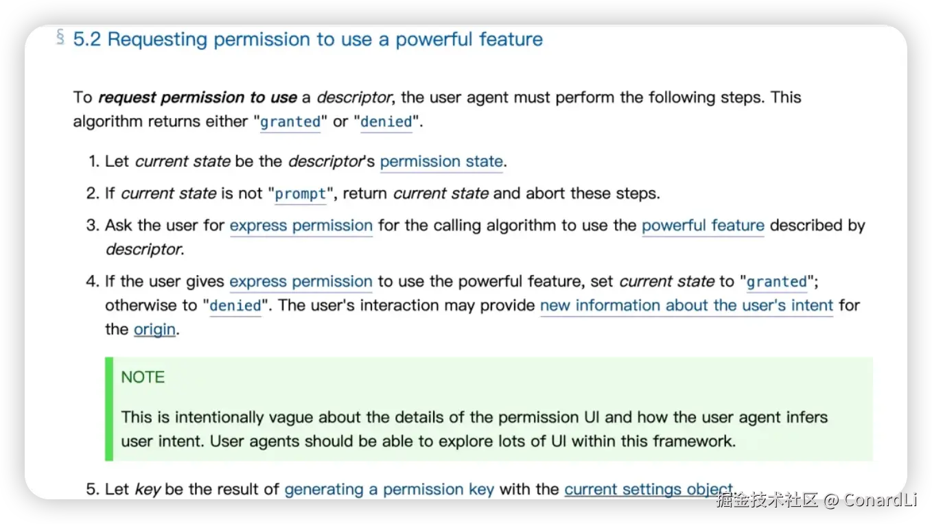 <permission> 元素是 HTML 中的新元素,用于改进 Web 权限的请求和管理。主要特点包括: