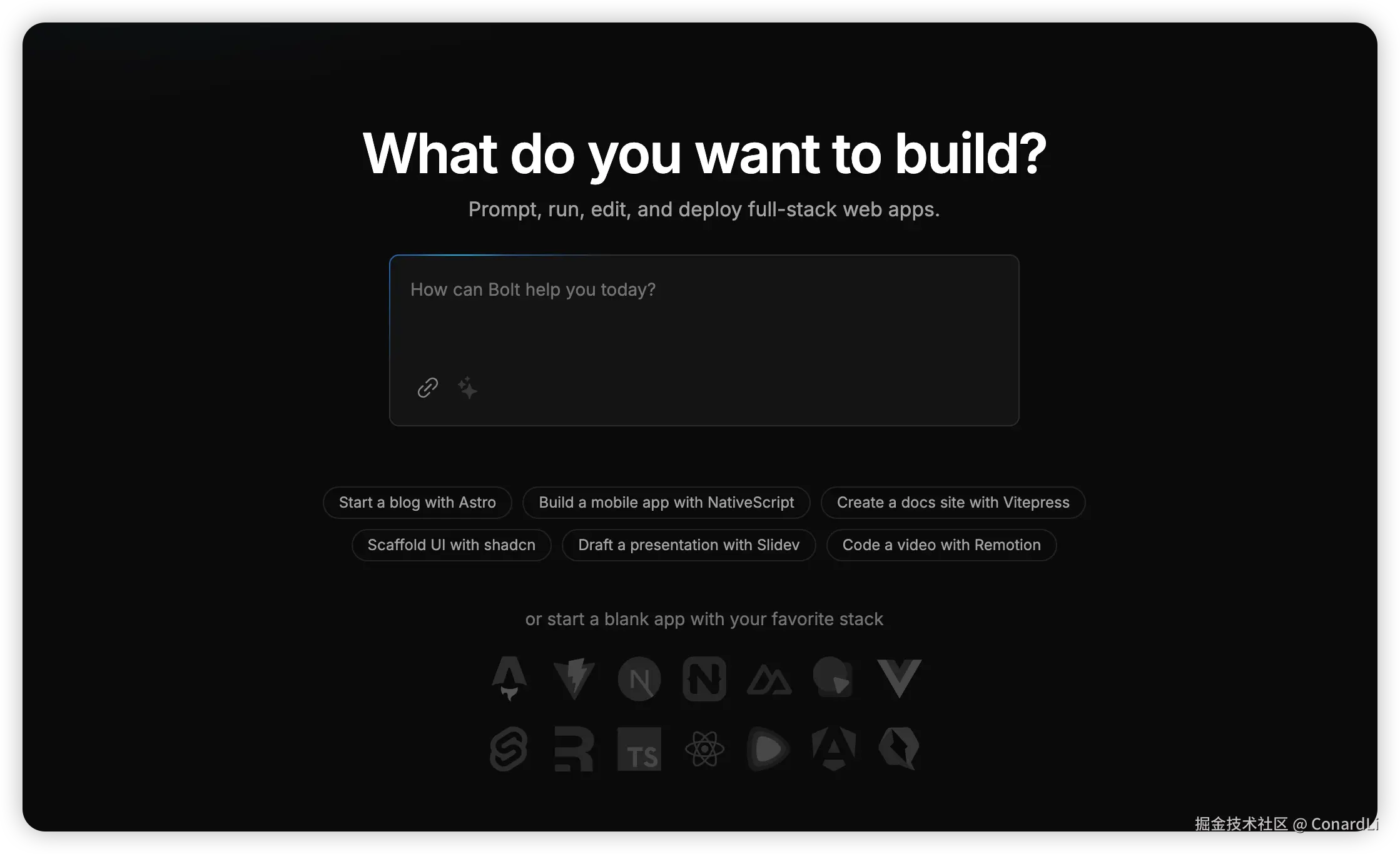 相比 V0 ,Bolt.new 给程序员的冲击会更大,因为它是真正意义上的可以基于 AI 生成全栈项目了,而 V0 当时大多数情况还是在以生成原型、DEMO 在使用。