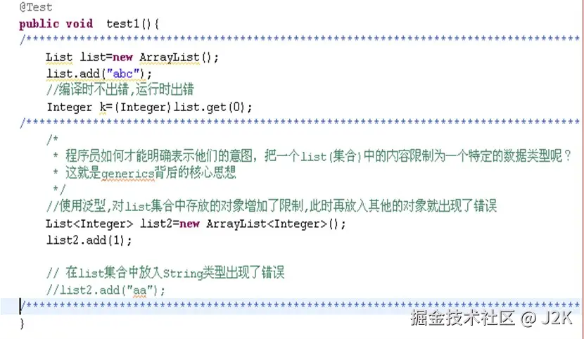 运行时,根本无法按照预期区分不同泛型参数的列表,因为类型信息在编译阶段就被 “擦掉”,JVM 运行时只看到原始的ArrayList类型,这就给一些依赖精确类型判断的高级逻辑带来了挑战,可能得另辟蹊径来实现类似功能。