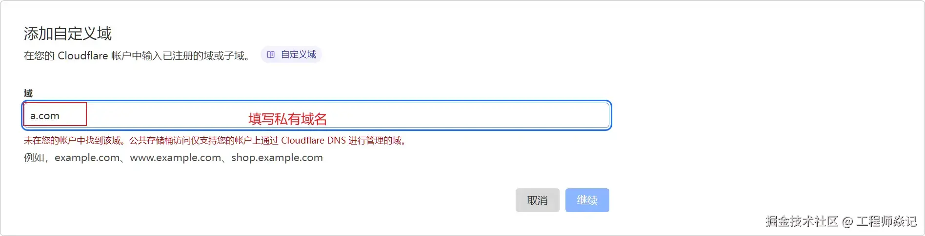 设定访问桶的域名,有两种方法,一种是有一个私有域名(需托管在Cloudflare上),另一个是用R2.dev子域名