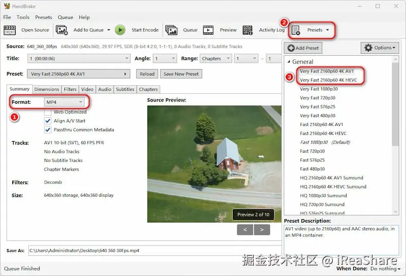 Handbrake是一个开源视频转码工具,可以帮助你轻松将常见的视频格式如MP4、MKV等转换为2K甚至4K分辨率,完全免费。它也是一个免费的4K上采样程序,能够制作4K视频。此外,HandBrake提供了必要的自定义选项,用于视频编码和分辨率修改。它支持Windows、macOS和Linux系统。
