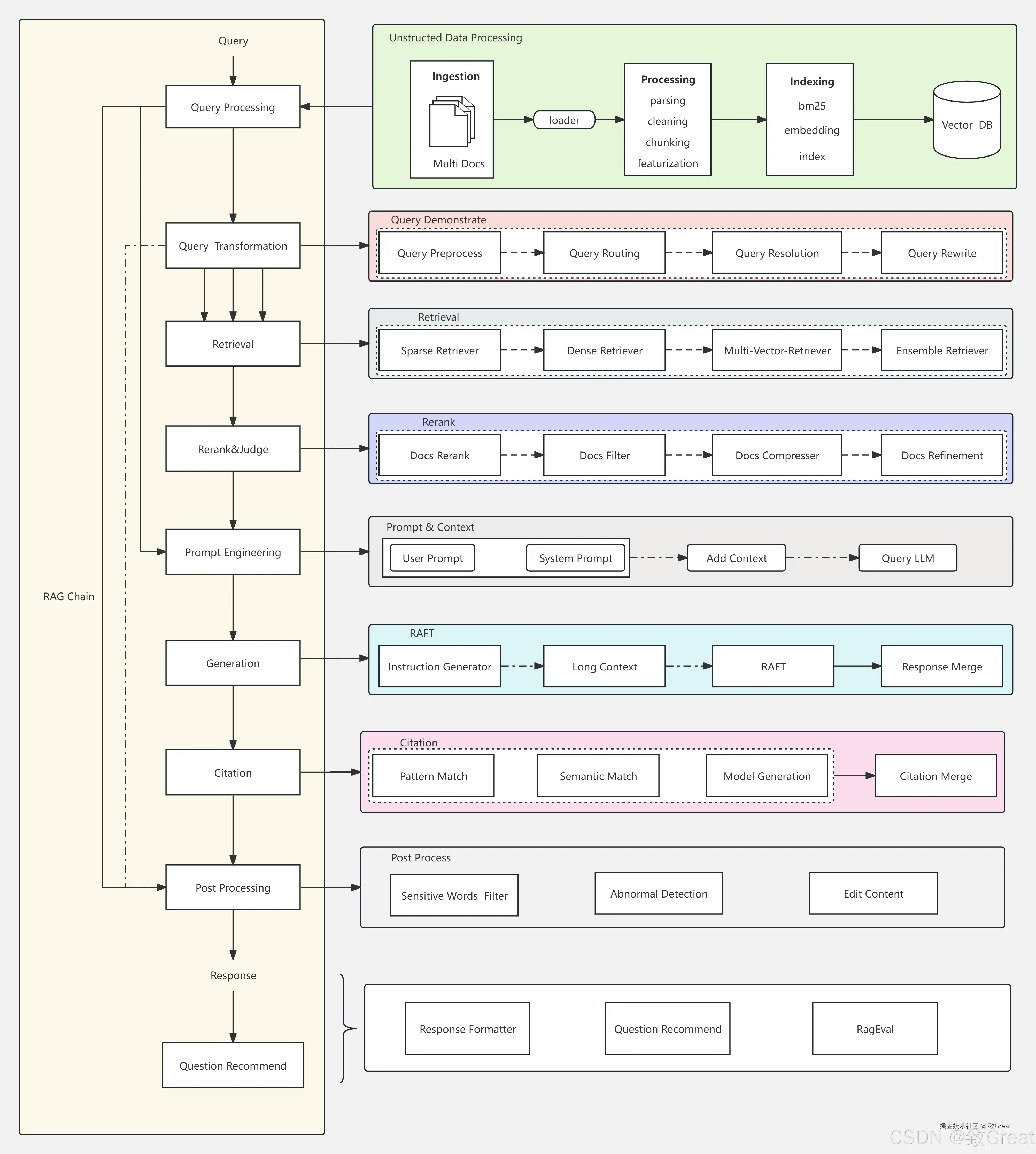 在2024快速发展的RAG技术环境中**,Advanced RAG架**构因其显著的效果和相对易于实现的特点,占据着主流地位。