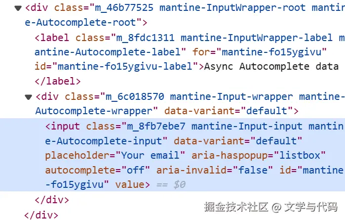 我们生成到 input 上面的是一个随机字符串样式,是没有任何语义可言的。如果使用组件的人需要覆盖这个样式,自定义样式,那怎么搞?总不可能让人家在业务项目中直接编写这个类名吧,这样业务开发肯定不干呀,那就必须解决,怎么解决呢?很简单,在生成随机类名的同时,自动生成一个语义化的类名:
