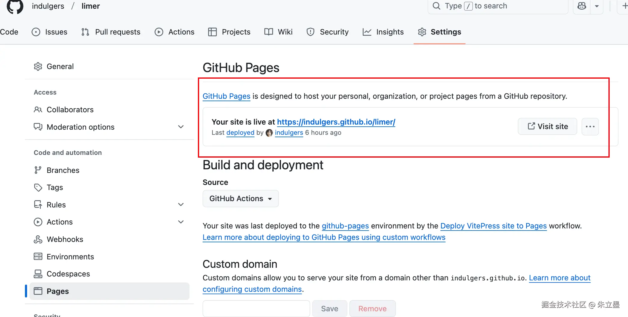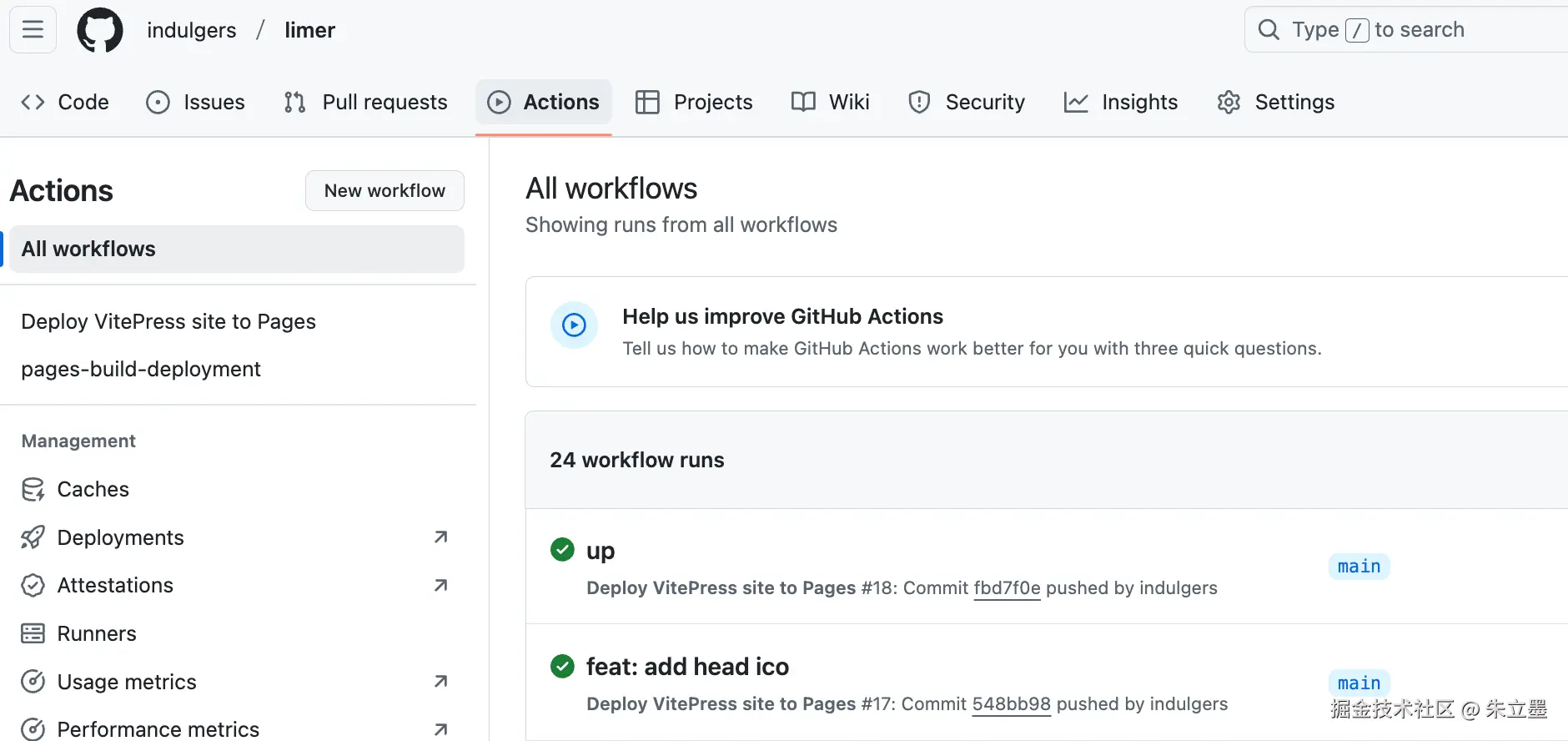 uses: actions/configure-pages@v4 # 在工作流程自动配置GithubPages