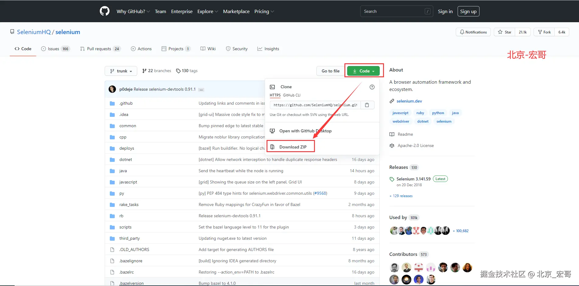 3.点击“SeleniumHQ/selenium”,如下图所示: