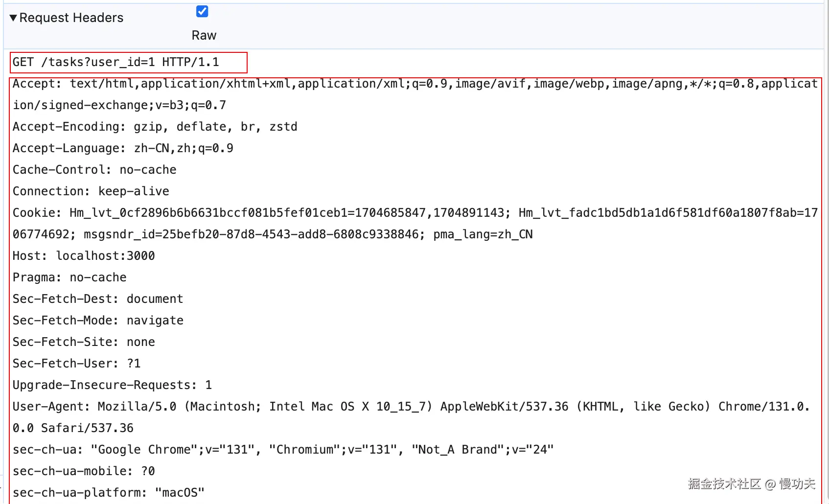 打开浏览器的network面板,点击一个请求,可以看到请求行和请求头:
