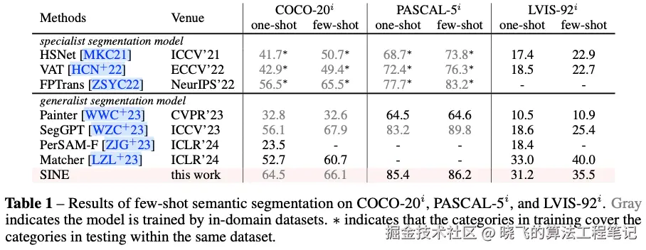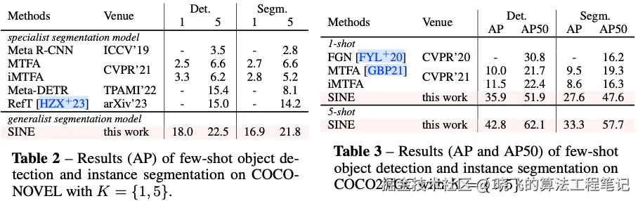 SINE可以处理广泛的分割任务,包括少量样本的语义分割、少量样本的实例分割和视频目标分割。