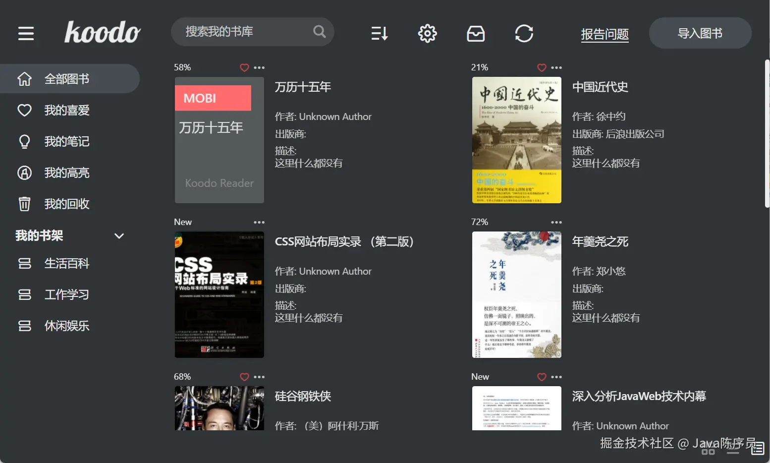koodo-reader 可以说是一款体验十分友好的桌面端阅读工具,完全满足了在 PC 端阅读的需求。还可以自行自行搭建服务,通过浏览器网页在线阅读。可惜的是,不支持移动端使用~