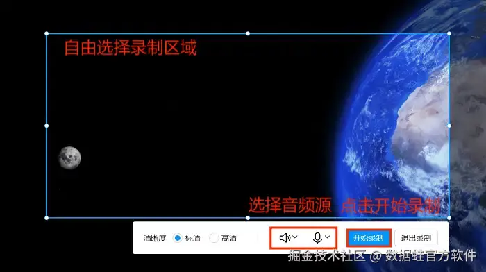 首先登场的是我的私藏宝藏——数据 蛙录屏软件,一款专业且功能强大的屏幕录制软件。它不仅支持视频、窗口、游戏等多种录制模式,还能自由设置录制区域、音频源和视频质量。更厉害的是,它还内置了高级剪辑功能,录制完成后你可以直接进行视频剪辑、添加特效等操作,无需再借助其他软件。而且软件的操作界面简洁明了,新手也能快速上手哦!