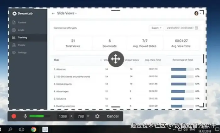 最后给大家介绍的是Free Cam,它也是一款不错的屏幕录制工具。支持全屏、应用窗口录制或自定义区域录制,还能选择录制系统声音和麦克风声音。