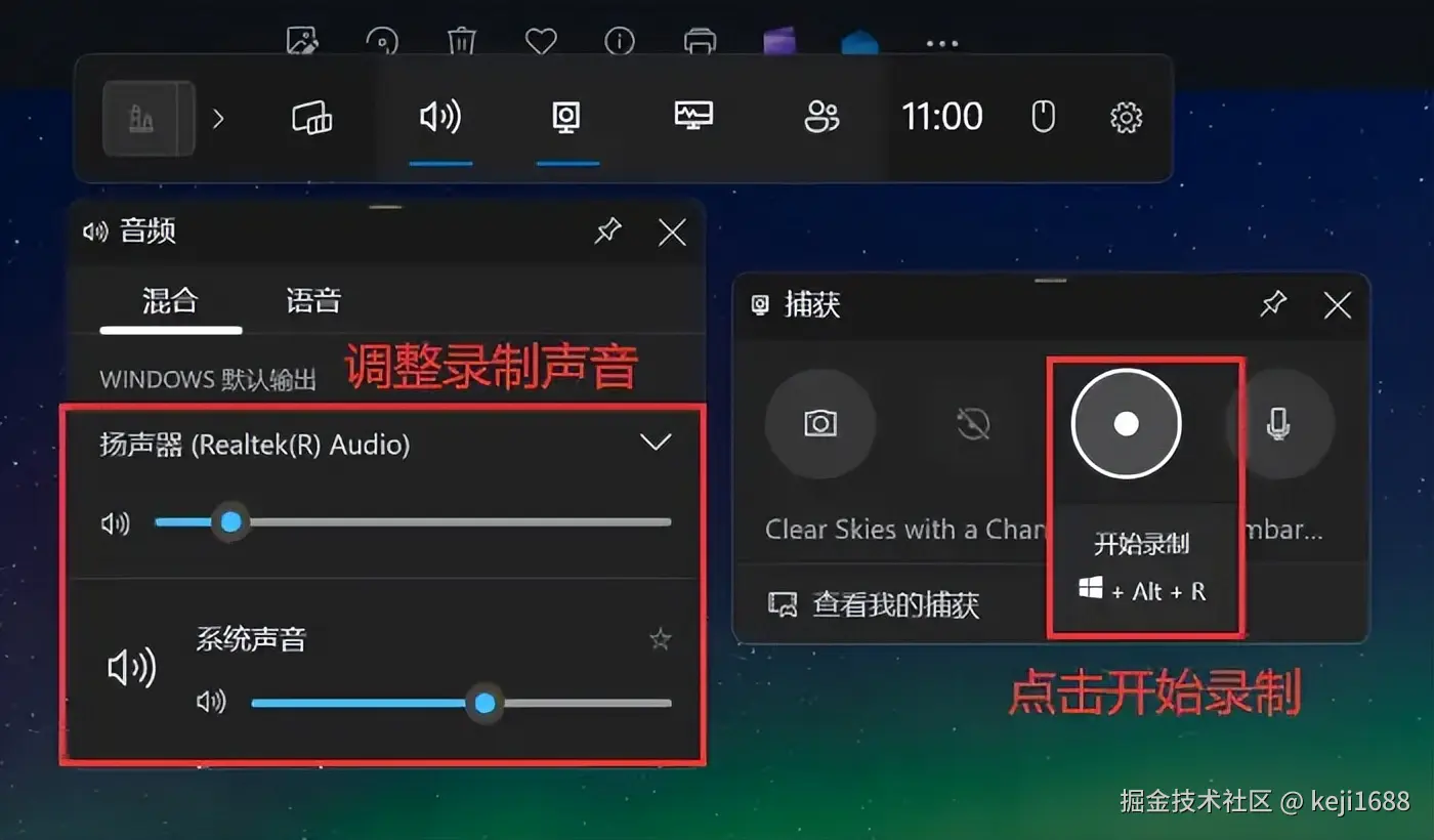 步骤1:按下键盘上的 【Win+G】 组合键,即可打开Xbox Game Bar。点击 【录制】 按钮开始录制。