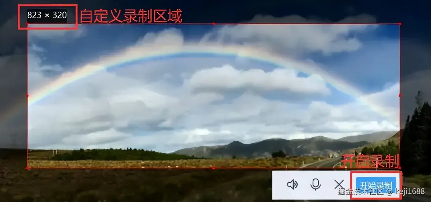 步骤2:点击屏幕上的红色录制按钮后,可以选择全屏录制或选定区域录制。点击 【录制】 按钮开始录制。
