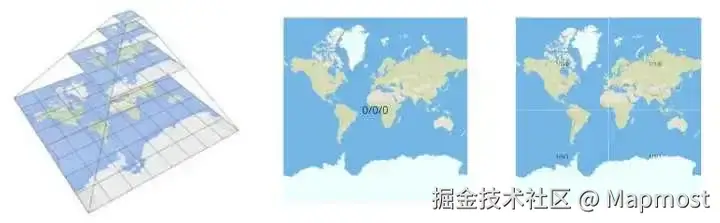 互联网地图采用墨卡托投影,把地图搞成了一个正方形,长宽是等值的,这正是为了瓦片分级切割方案服务的,而这个切割方案则是基于四叉树索引。