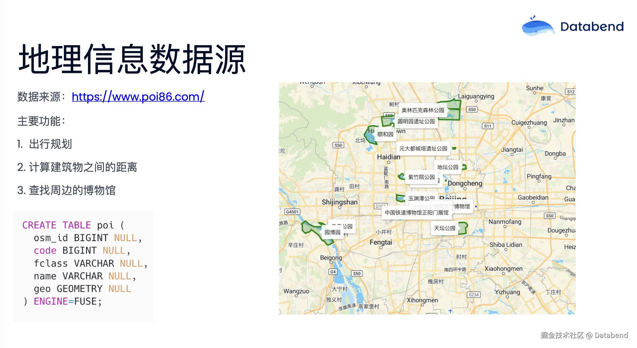 白珅:Databend 在地理空间数据处理中的优势与实践