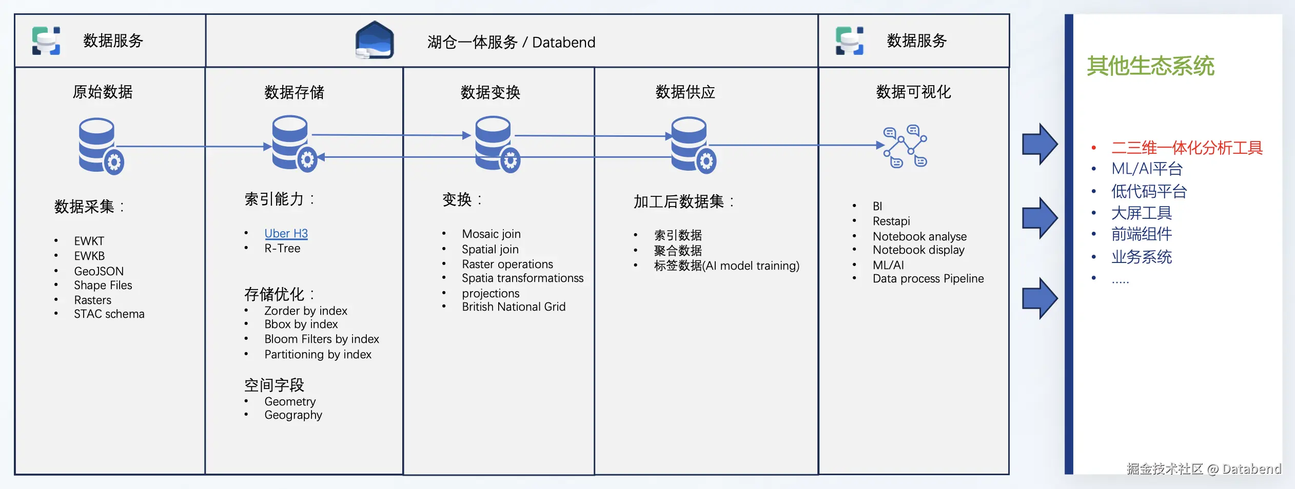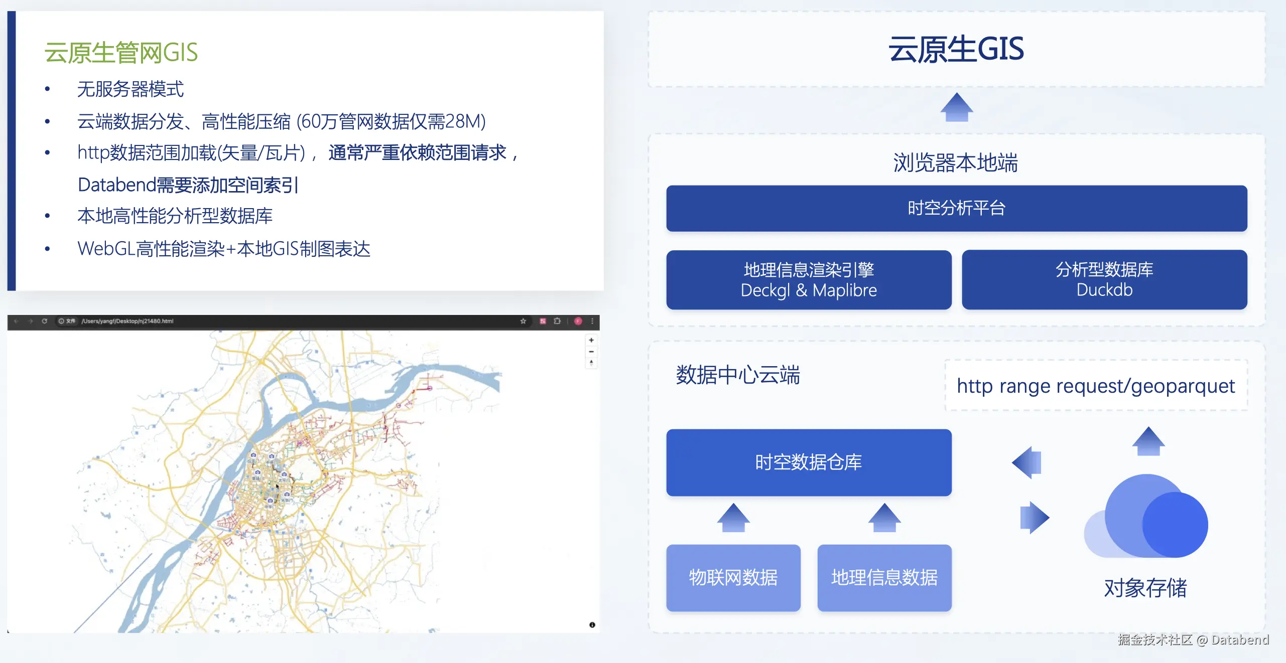 存储层:基于 Databend 的列式存储和空间索引技术,支持海量空间数据的高效管理;