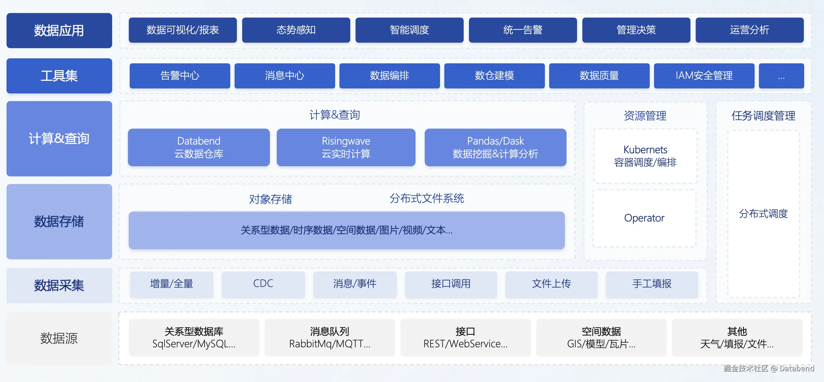 - 数据仓库采用 Databend,充分利用其弹性扩展和高效处理能力。